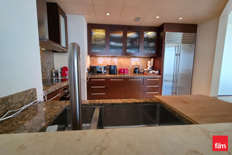 This 2-bedroom apartment has two stylish bathrooms and is located on a high floor with stunning views of Dubai Opera. Enjoy waking up to beautiful city and cultural landmark views. Inside, you’ll find built-in wardrobes, modern kitchen appliances, and elevator access for easy living in this high-rise home.