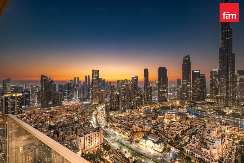 Situated on a high floor (above 35th floor), this 959 sq. ft. residence delivers panoramic skyline views from every room, making it one of the most desirable layouts in Downtown Dubai.