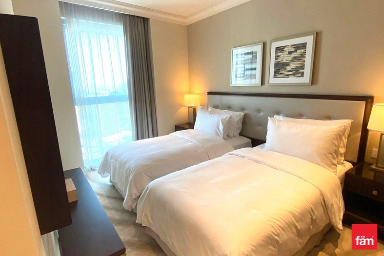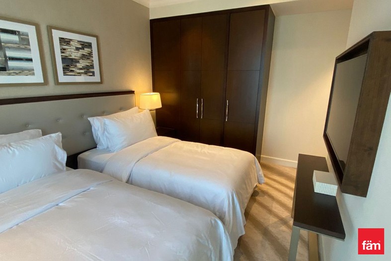 fäm Properties present this premium 2-bedroom apartment (01 series) available for rent in Address Fountain Views Tower 2, offering direct views of Downtown Dubai. This spacious unit features a well-planned layout with floor-to-ceiling windows, filling the apartment with natural light and enhancing the sense of space. Both bedrooms are generously sized with built-in wardrobes, while the modern kitchen is fully fitted with high-quality appliances. The living and dining area opens seamlessly, ideal for comfortable living and entertaining. Residents enjoy world-class amenities including a swimming pool, state-of-the-art gym, concierge services, and direct access to Dubai Mall via an air-conditioned bridge. Located in the heart of Downtown, this home is perfect for those seeking luxury, convenience, and an iconic address.